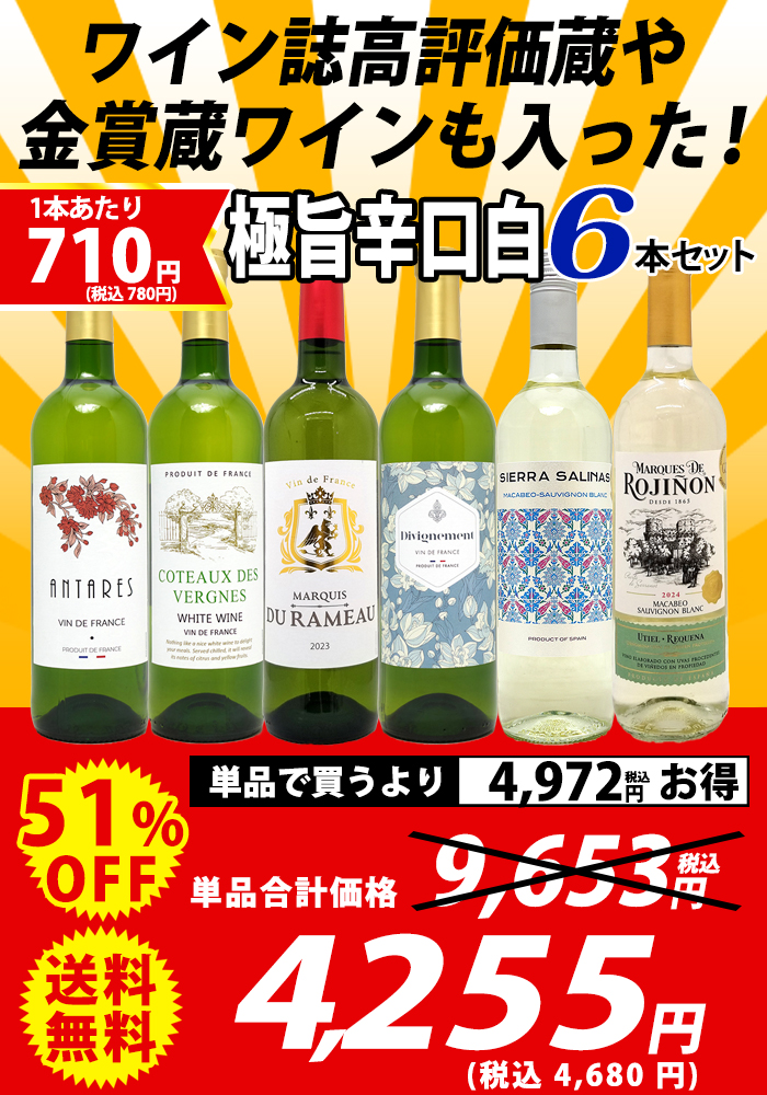 ワイン ワインセット 高評価蔵や金賞蔵も入った辛口白6本セット 送料無料 飲み比べセット ギフト 大人気 ^W0SWF3SE^